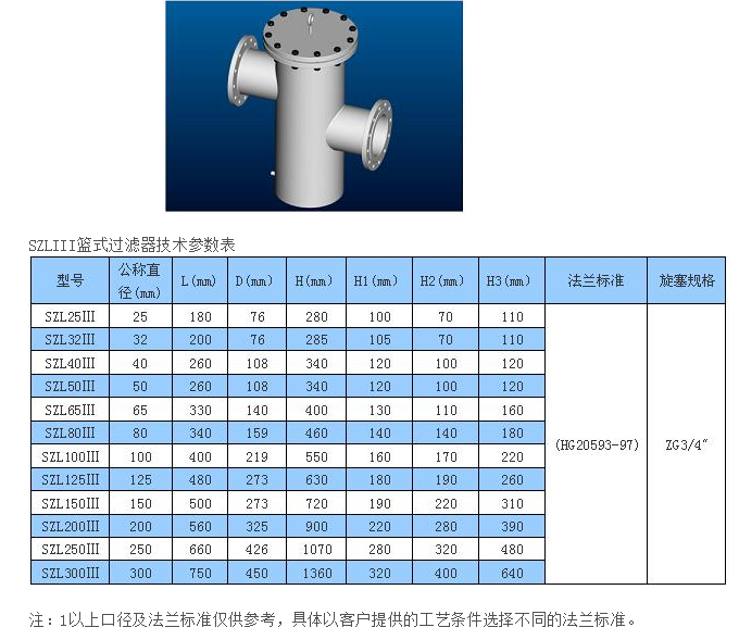 SZL-III型篮式过滤器进口与出口不在同一水平线上,底部为平底结构。过滤器上部可打开取出过滤网进行清洗,底部设有排污口,可排放尽过滤器内介质。