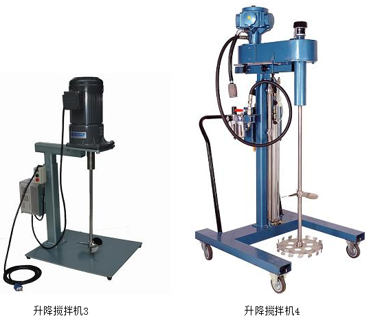 可移动升降式搅拌机特征: 1底座采用平稳牢固的矩形框架,并设置万向轮,移动方便。 2升降系类采用滚动轴承结构,轻便灵活,结构紧凑。