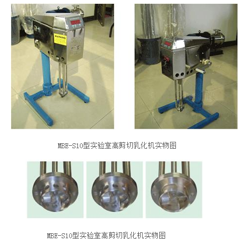 MBE-S10型实验室高剪切乳化机是一种高科技的混合、分散、乳化实验机,可为用户提供大量正确的混合参数,外形美观,清洗方便,采用SUS304不锈钢制造,重量16kg,手摇式升降或液压升降装置,升降行程350mm,特制的450W三相/二相电机,转速0-10000转/分任意调节,定子头有圆孔、长孔、网孔三种,满足不同物料实验,工作能力1升-10升。