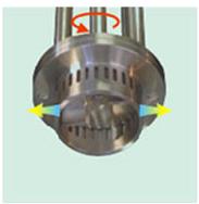物料不断高速地从径向射出,在物料本身和容器壁的阻力下改变流向,与此同时在转子轴上两个高速旋转的螺旋桨叶的作用下,又形成上、下两股强烈的翻动湍流。物料经过数次循环,最终完成分散、乳化、均质过程。